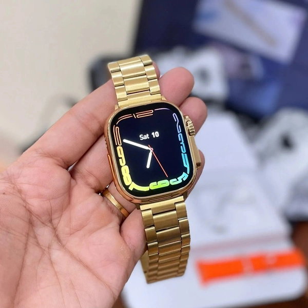 series 8 ultra golden Smartwatch(49MM) || metal screw/strap lock||Bluetooth Calling||Compatible With IOS And Android||(With Logo)